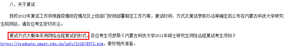 内蒙古科技大学、首都师大也明确表示线上复试