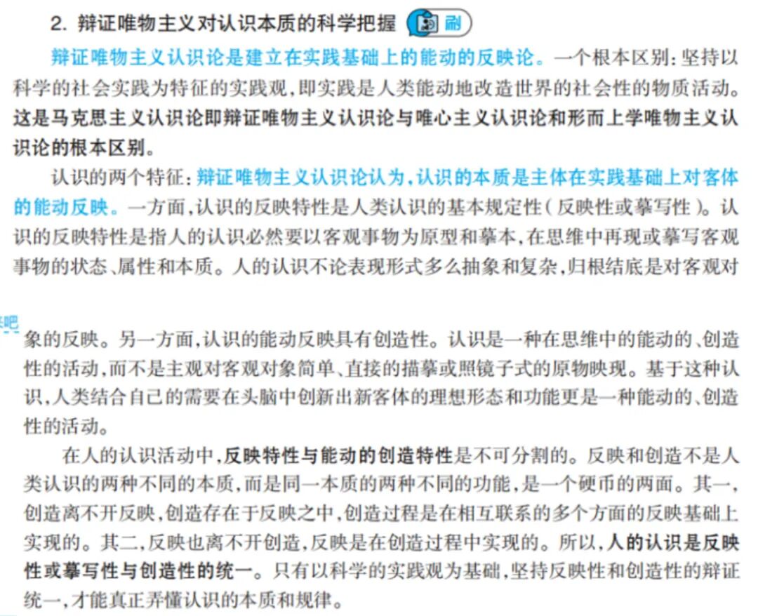 1.认识的本质:主体在实践基础上对客体的能动反映。
