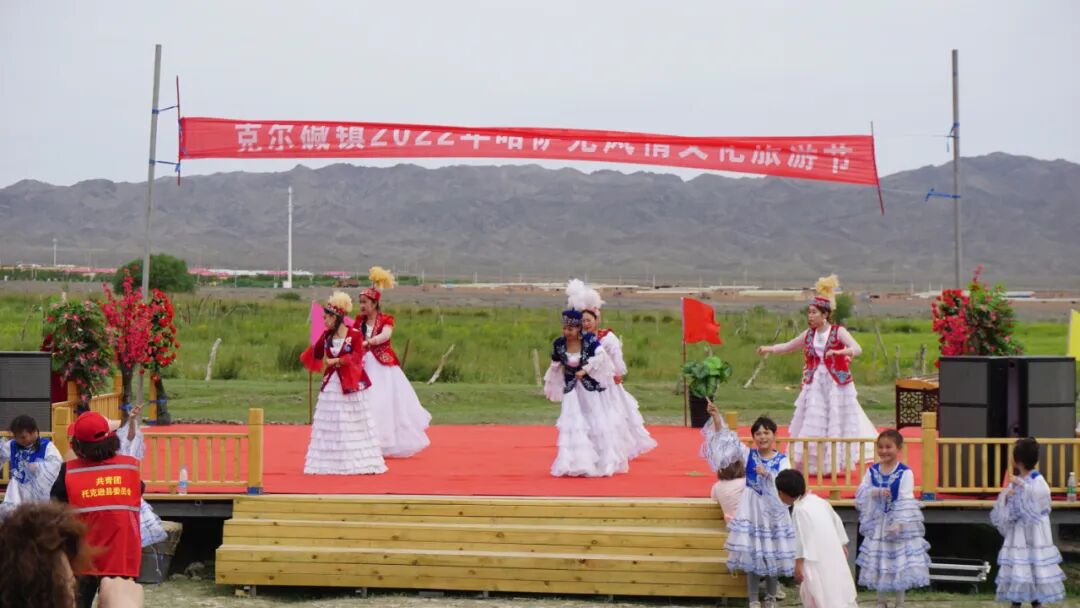 云薹轻舞没牛羊,雪山对卧白毡房。遥看儿郎挥鞭起,挣得头筹为叼羊。7月8日,“克尔碱镇2022年哈萨克风情文化旅游节”在吐鲁番市托克逊县克尔碱镇通沟村火热举行。