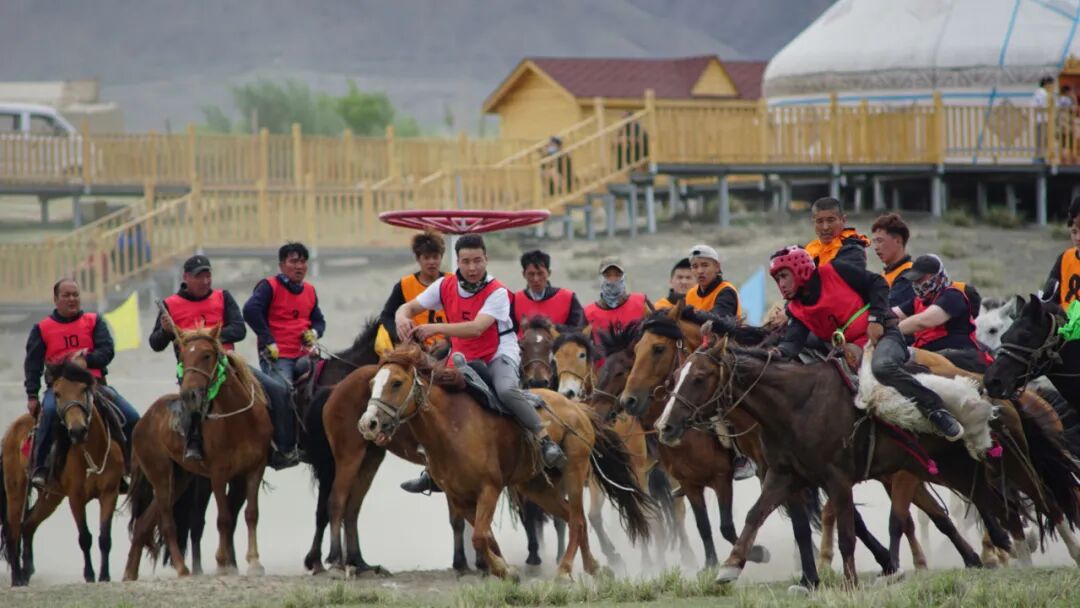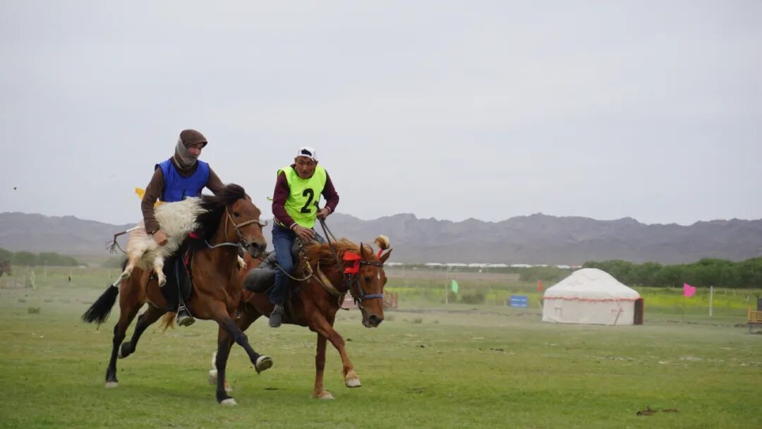 只见裁判手势一挥,两队骑手迅速向放有羔羊的指定位置靠拢,一人眼疾手快,一个弯腰侧身就将羔羊提上马背,随即像离弦之箭冲了出去,其他骑手见状,立即调转马头,风驰电掣般向前席卷而去,你不让我,我不让你,互相奋蹄直追,只听到满耳“嘚嘚”的蹄声和选手配合的呼喊声。特别是当双方都抓住羊,选手们相互拉扯,形成对峙,难解难分。选手们精湛的骑术和高超的进攻防守战术,让比赛惊险刺激,高潮迭起,令人目不暇接,现场观众不时发出阵阵欢呼声,纷纷为选手加油。