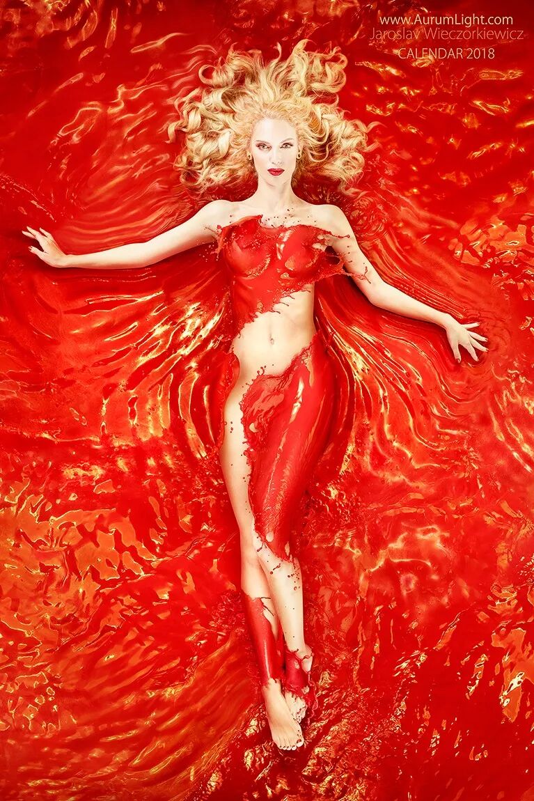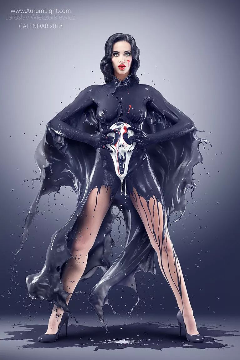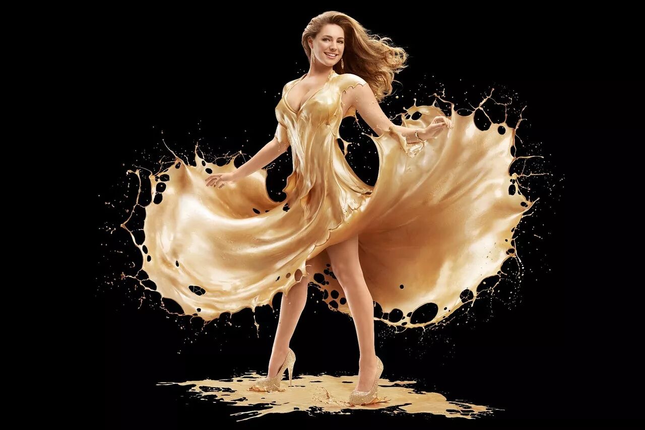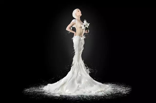这位天才艺术家最擅长以人体与液体相结合进行创作,让身材圆润女模身披液体,十分性感抢眼。而液体肆意飞流却呈现出飘逸质感,仿佛一件件天作衣裳。