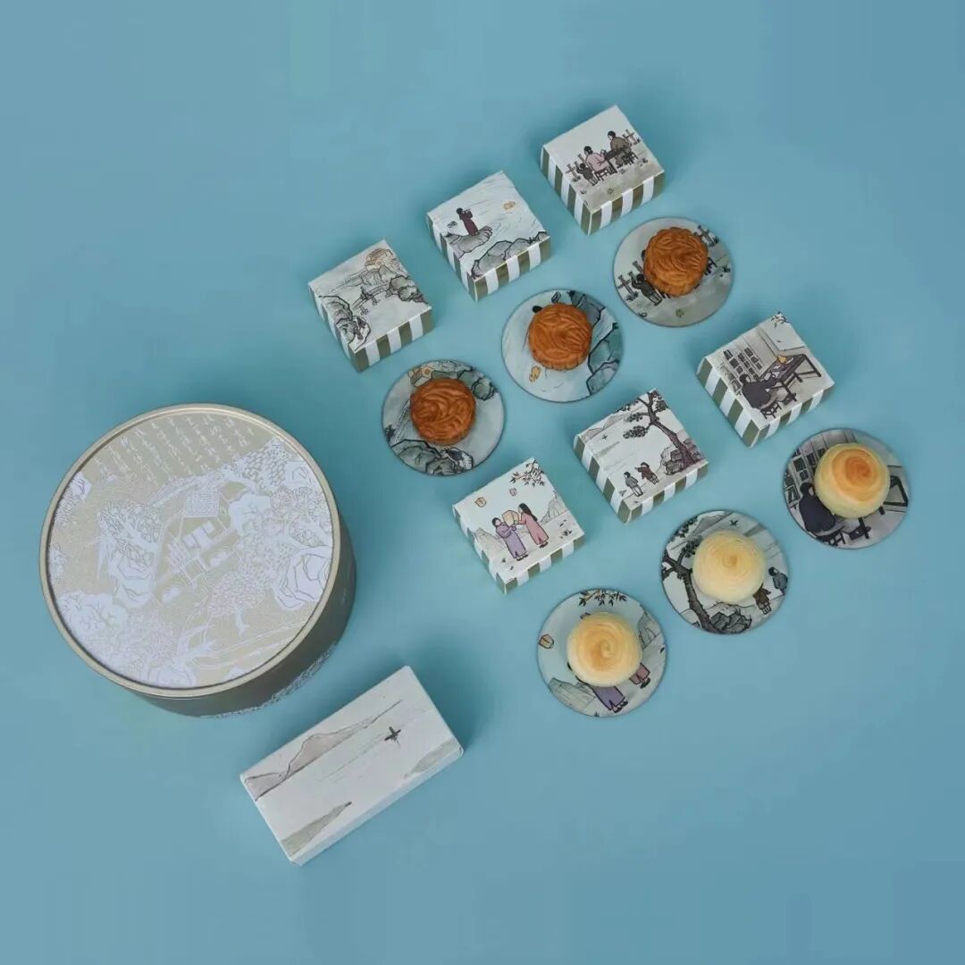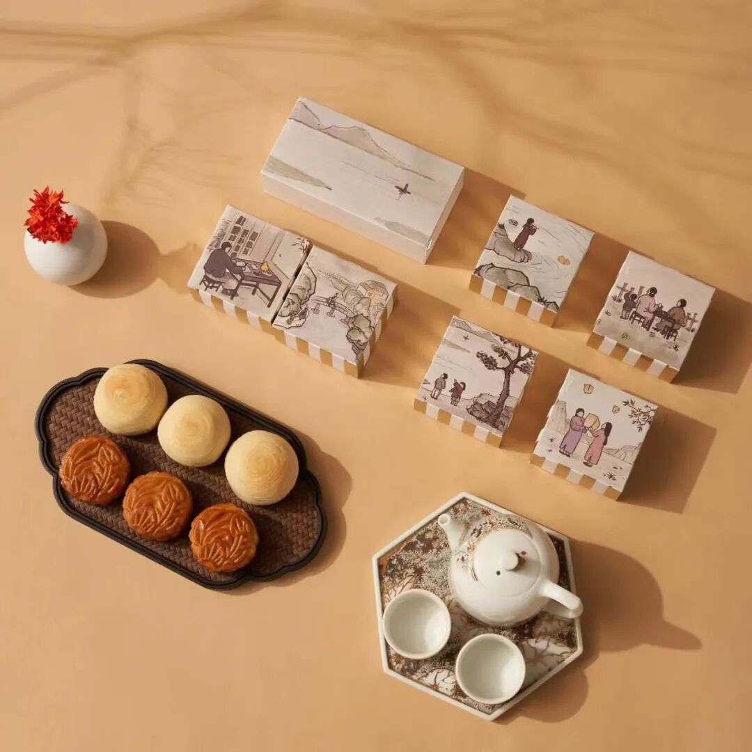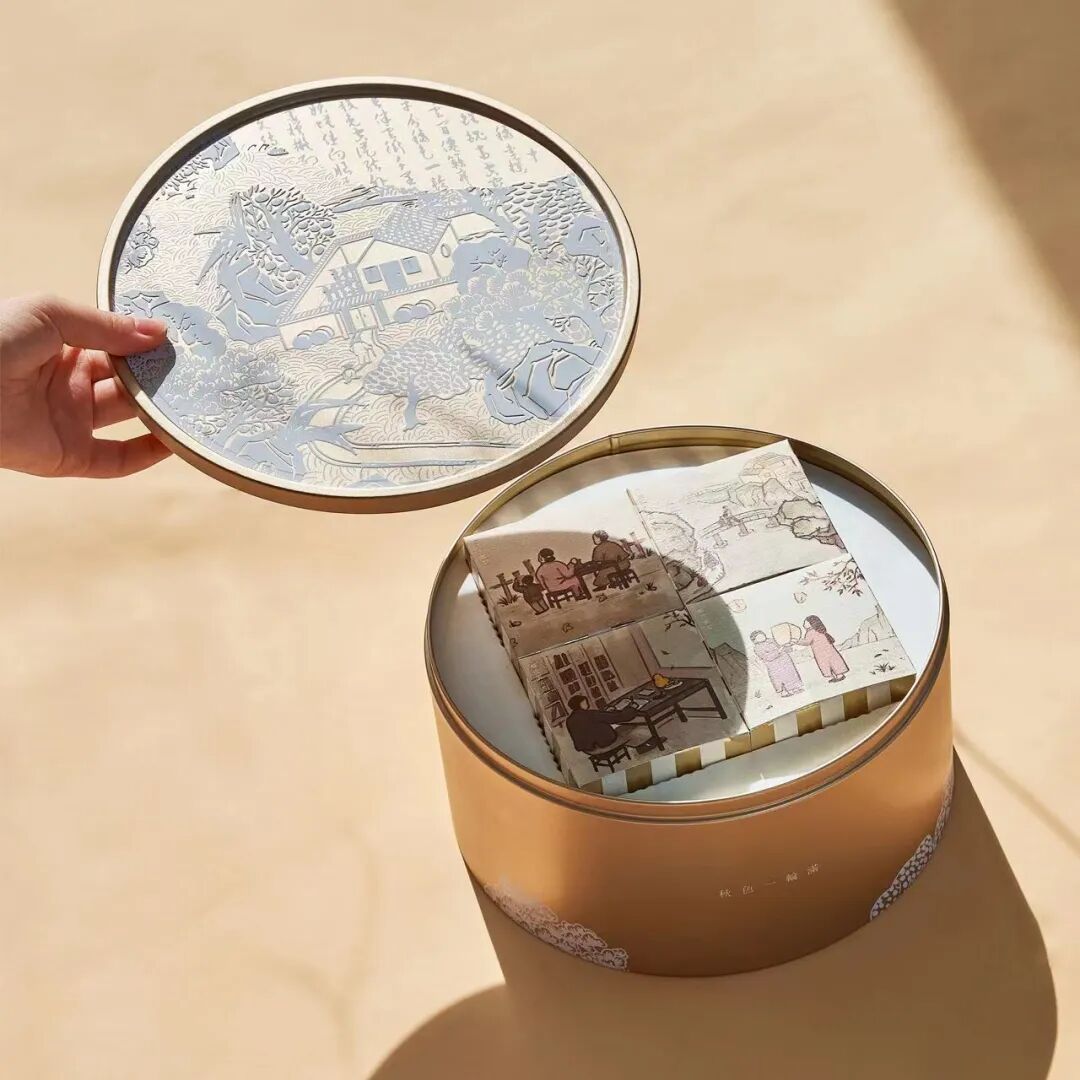 而且还携手潜心做锅具的专业品牌炊大皇,附送一款可炖可煮的家用汤锅,让你烹饪食物的香气。受南宋马和之《月色秋声图》的启发,从包装设计到礼品定制都充满古典雅致的中国韵味,兼具中国传统文化与现代生活美学。赏月色 - 品秋味 - 听秋声,构建了一个三维立体的感官空间,一画一景一故事,给你一个诗情画意的中秋节。这次的月饼,联手【幸福西饼】,首次创新桃山皮幻彩工艺,甄选6款幸福风味,软糯之间,美味流心满溢。月饼的造型源自传统的窗花设计,饼皮雕花取自IP画卷的重要场景元素。更有IP画卷,以建筑景观为基础,采用中式绘画的技法创作。画卷题跋诗中暗藏经典IP,搭配主题印章,更显古韵。40+IP人物跨越时空,月下话中秋,共书好故事。