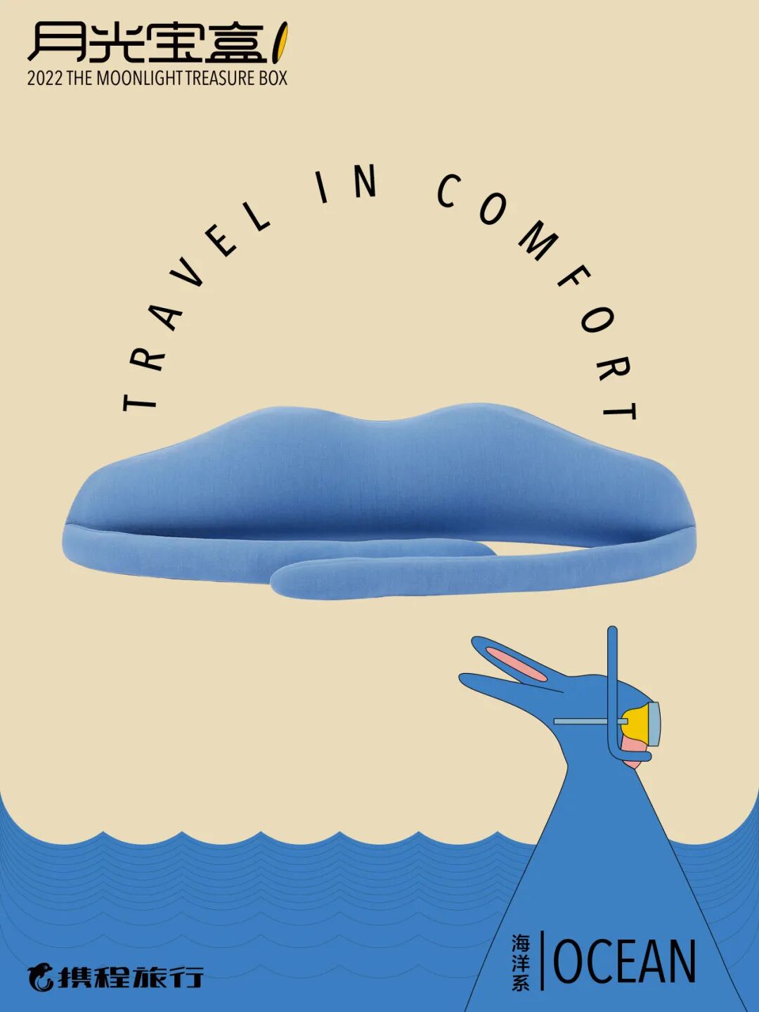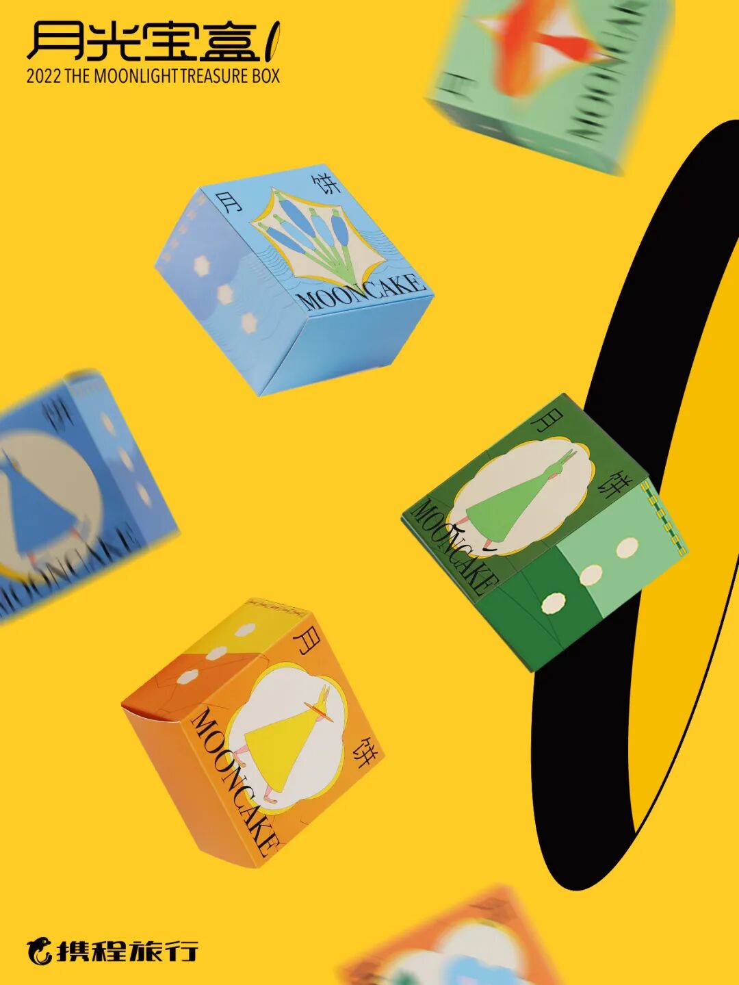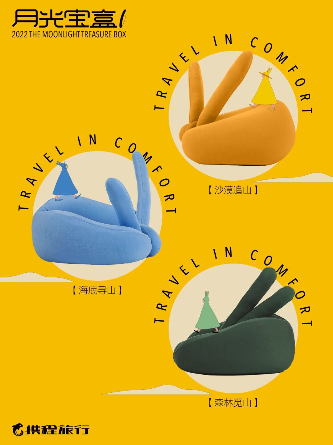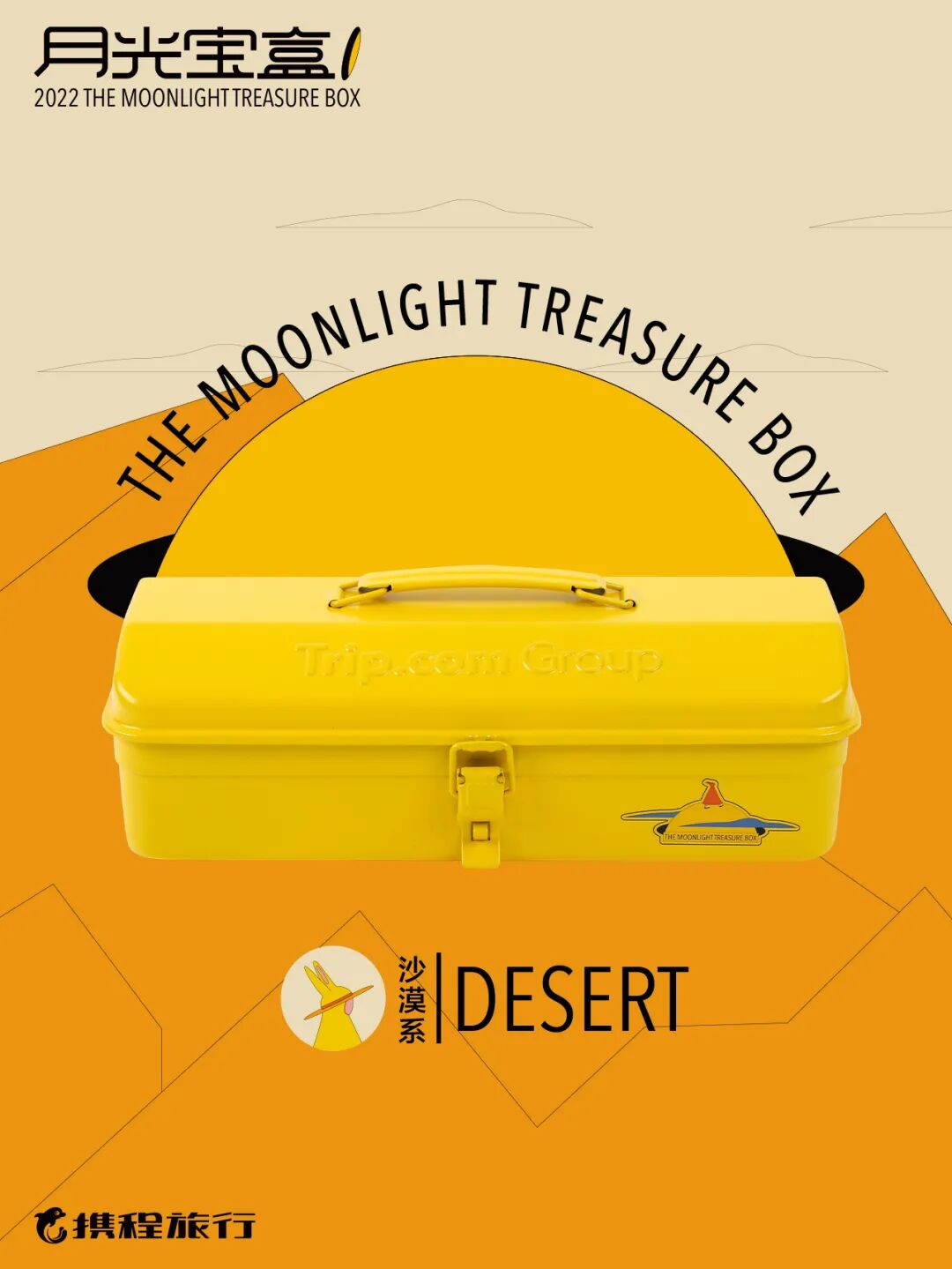 2022·携程集团中秋礼盒,以“月光宝盒”作为创作灵感,将沙漠、海洋、森林几个元素融入其中。礼盒内含月饼、颈枕、贴纸、贺卡。这是送给旅行者的「月光宝盒」,它是一把开启地图的钥匙,能激发起对未知旅途的好奇心和探索心。