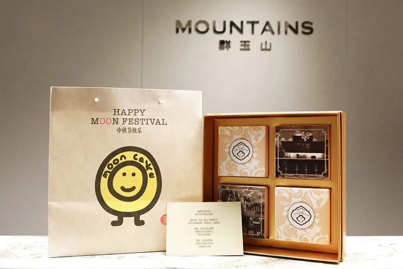 群玉山定制了一批由「广慈聚爱屋」孩子们亲手参与包装制作 的月饼,并特别设计了充满童趣的“Mountains Moon Festival”专属包装,随礼盒附上祝 愿卡片。