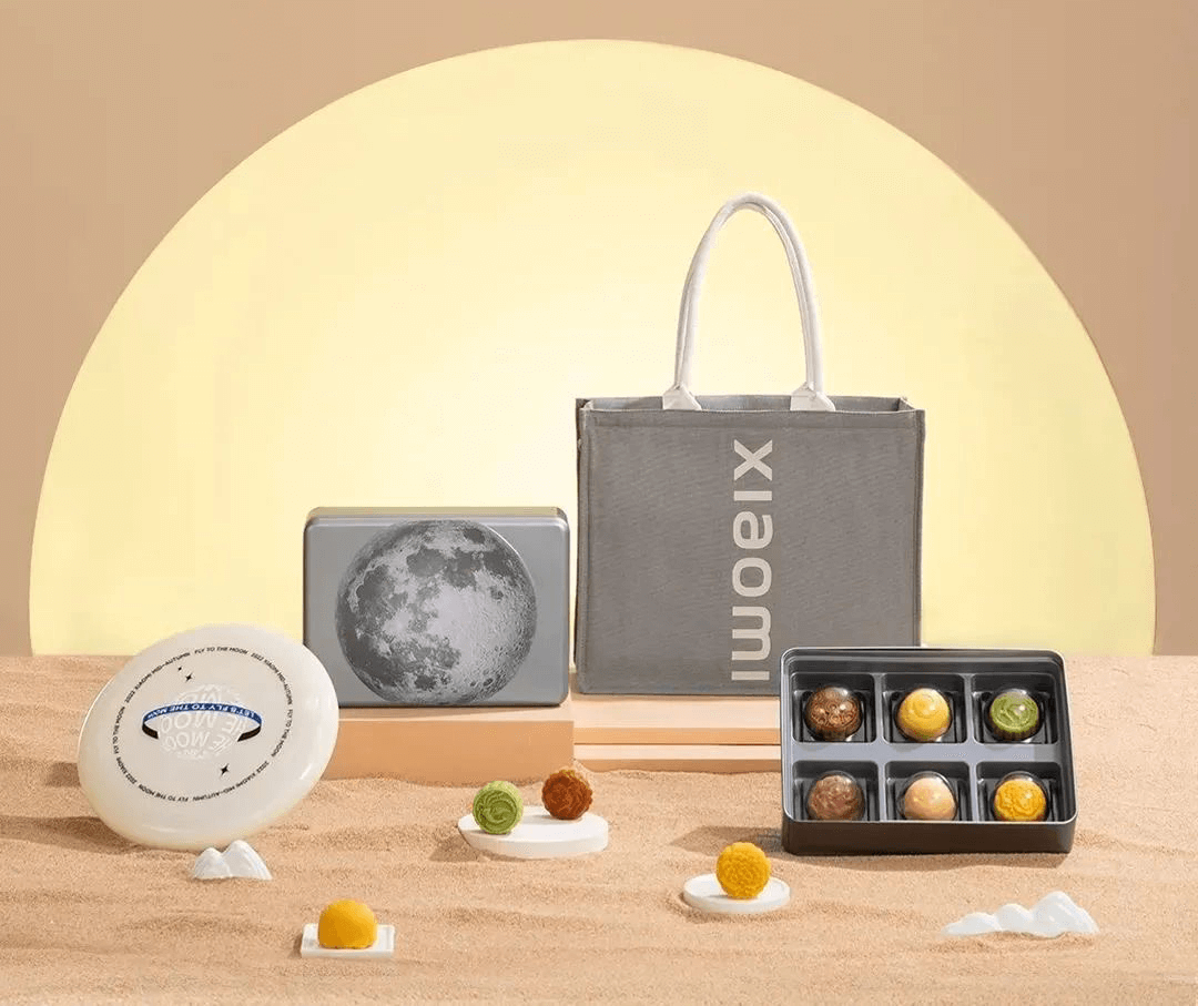 美团最大的亮点就在包装盒,上半部分可单独作为手办展示,下半部分还可以用来作收纳盒、笔筒、小花盆,可谓一物多用。小米采用月球图案的包装盒,搭配极简设计的托特包,内置6种新奇口味的月饼。