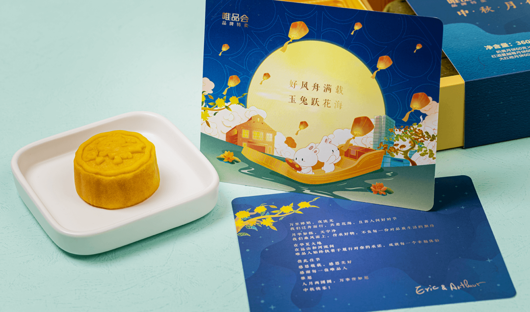 而且特意采用岩彩与山水风格的设计,实打实呈现出东方色彩的神韵与气魄。原木故事灯、月球蜡烛、木质折叠书灯、月相印章、月相速干黑色印台、小羊驼三三定制月饼、月札精折册等,古色古香的小玩意,为你的房屋增添一丝古韵。搜狐的礼盒,则限定月兔狐狸作为主C,不同月相排列在两侧,只要把盒子合起来就可以得到一个满月。外包装创意性地呼应了CEO张朝阳的理性浪漫,还附上了他的地月公式手稿。除了月饼、公仔外,搜狐赠送给大家DIY的乐趣,每个人都能自己动手获得独一无二的中秋月相。唯品会2022中秋礼盒联名广州老字号陶陶居,原料选择健康且低卡,还有经典奶黄、大红袍、蔓越莓红酒三款高人气口味,为你带来醇香逼人。