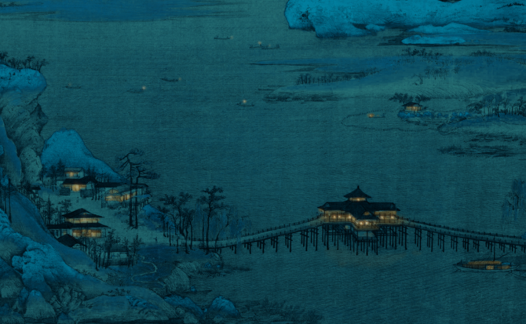 这个鼠标垫设计是我见过的比较有想法的二次创作,将千里江山图的白天变成了黑夜,孤月高悬于山巅,千里人家与江上渔舟都点上了暖暖的灯火,非常有意境。