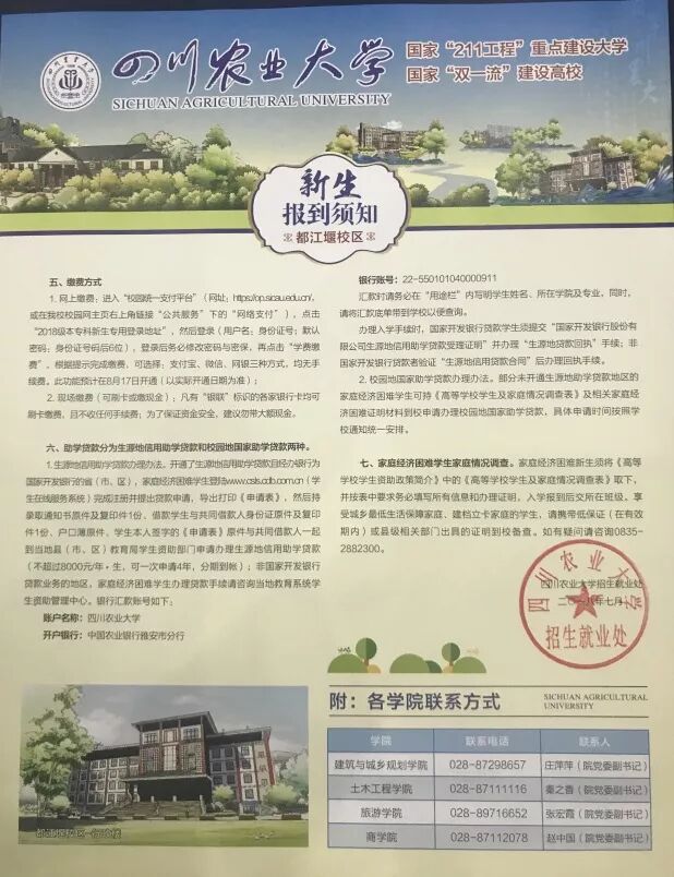 今年,四川农业大学录取通知书进行了全新改版升级。原有的录取通知书配上了印有四川农业大学标志性建筑的手绘图,色彩鲜艳明丽。