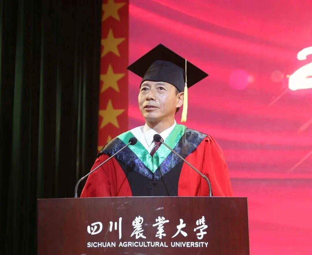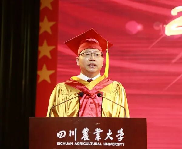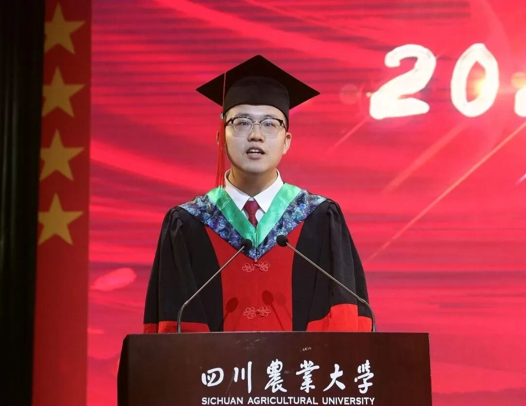 毕业研究生代表,水稻研究所作物遗传育种专业2018级博士研究生陶阳在发言中表示,母校给予的不仅有专业知识、师生情谊和科学思维,更有“川农大精神”的传承使命。不管未来身在何处,都要将个人前途和国家命运紧密结合,为实现中华民族伟大复兴贡献川农学子力量。