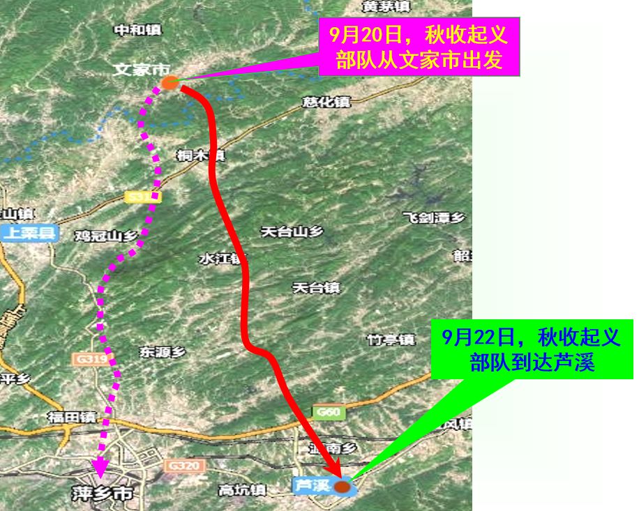 这个时候毛泽东所带的工农红军,退到了湖南文家市,并计划向萍乡转移。这个时候他收到一封信,来自当时江西省委书记汪泽楷,告诉他宁冈有党的武装,这正和当时毛泽东向农村转移的思路不谋而合,于是毛泽东取道莲花,向井冈山开进。