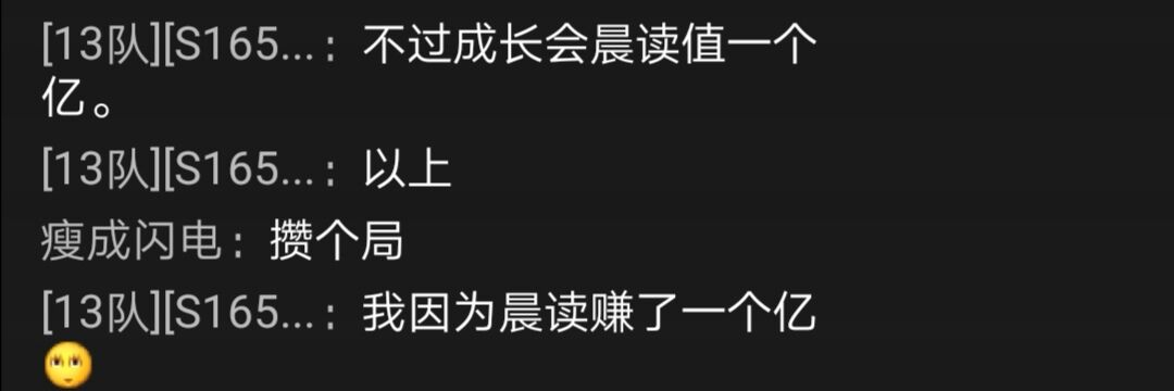(3) 有一位投资公司的创始人参与读书小组两年,从“心理学”到“毛选”,说最近因为晨读最近“赚了一个亿”。所以这个社群的人,人均千万身价。