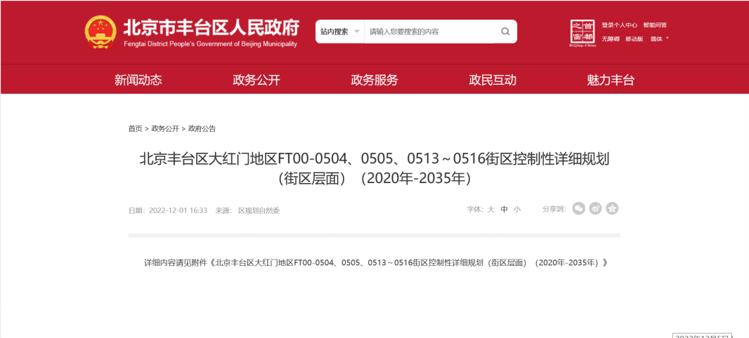《北京丰台区大红门地区FT00-0504、0505、0513-0516街区控制性详细规划(街区层面)》日前公布。大红门地区将构建“两轴四区、一带多点”空间结构,依托南苑路和现状大红门路构建“礼乐”双轴。