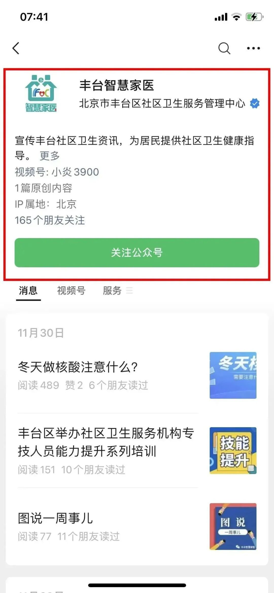 ■未签约居民关注“丰台智慧家医”公众号