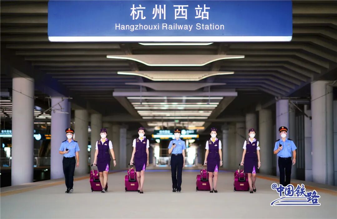 随着复兴号列车缓缓进站,4名身穿紫色制服的乘务员列队等候,这是试运行乘务工作团队正在进行站台接发列车模拟演练。杭州西站是合杭高铁湖杭段最大的新建车站,总建筑面积约51万平方米,相当于70个标准足球场。目前该线路已进入按图试运行阶段,即将开通运营。铁路部门按照计划标准进行试验动车组作业组织,同时模拟办理旅客广播引导、站台接发列车等客运业务。
