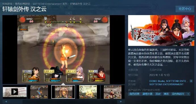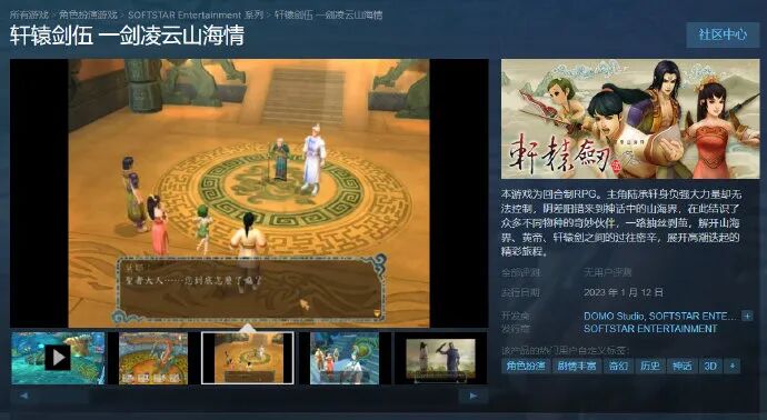 《轩辕剑伍》系列三部曲商店页面上线Steam,预计2023年1月12日解锁发售,三部曲包含《轩辕剑外传 云之遥》《轩辕剑外传 汉之云》和《轩辕剑伍 一剑凌云山海情》,Steam版《云之遥》收录了「五丈原暮云篇」、「五丈原朝云篇」和「兰茵篇」三个 DLC。
