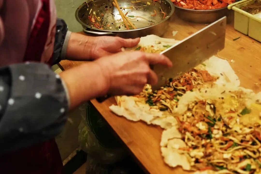 为顾客送上热腾腾煎饼的“外卖小哥”