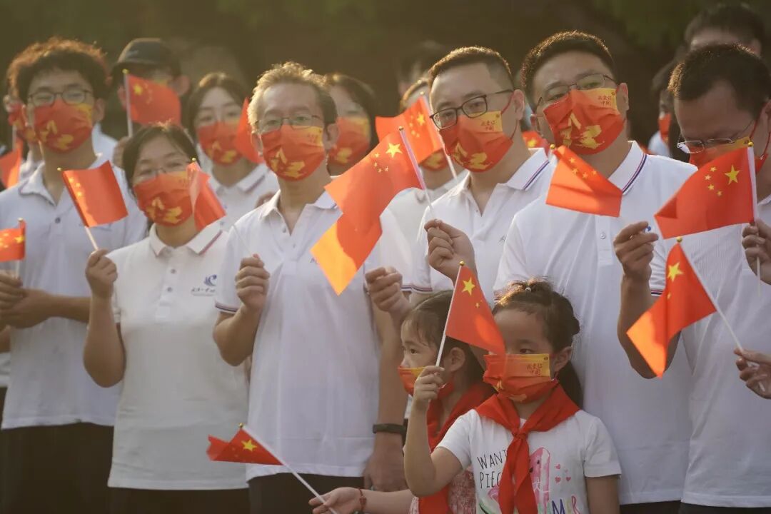 千幅小红旗随韵律舞动