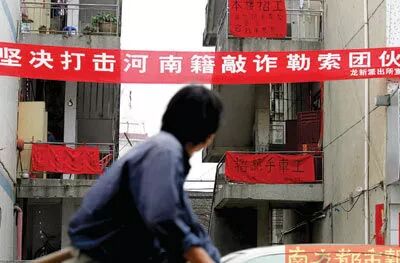 △图片来自南方都市报《派出所高悬打击河南籍犯罪团伙横幅被指有歧视》
