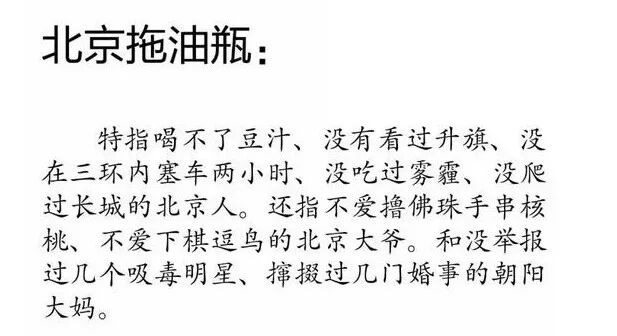 「地域拖油瓶」是指那些不符合公众地域想象的人群。例如数学不及格的黄冈人、不会跳舞唱歌的新疆人、不会骑马射箭的内蒙人、以及没看过升旗的北京人。