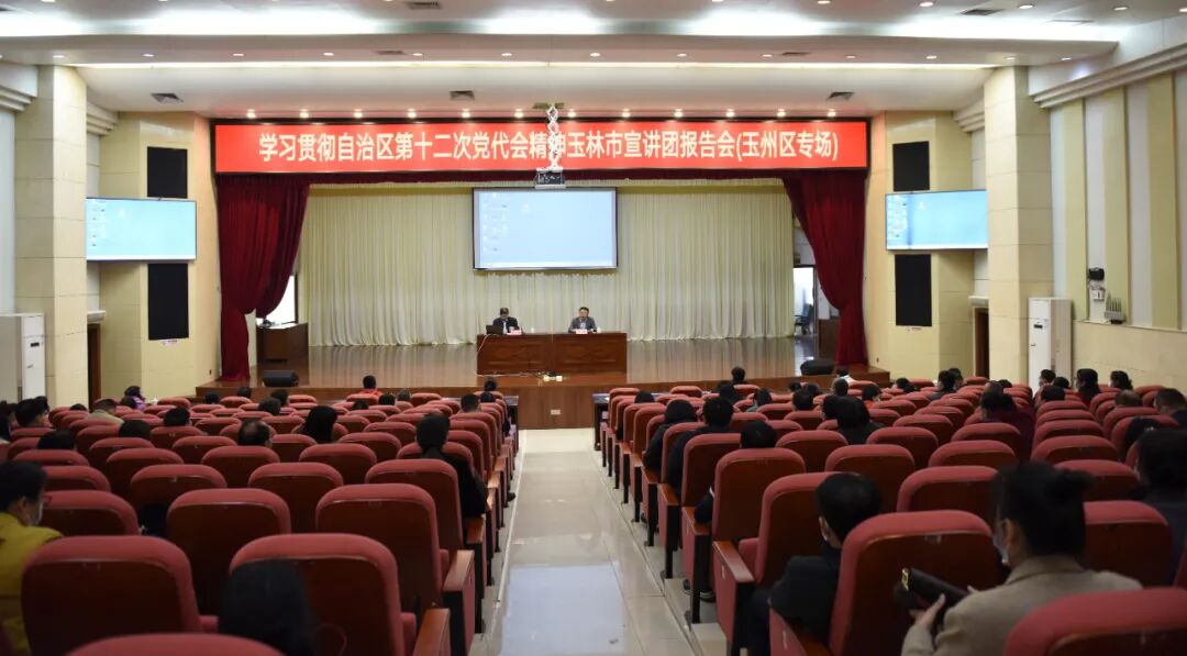 1月7日,学习贯彻自治区第十二次党代会精神玉林市宣讲团首场报告会在玉州区开讲,玉林市宣讲团成员,玉林师范学院党委常委、宣传部部长徐一周作专题宣讲,玉州区委常委、宣传部部长乔鹏主持报告会。