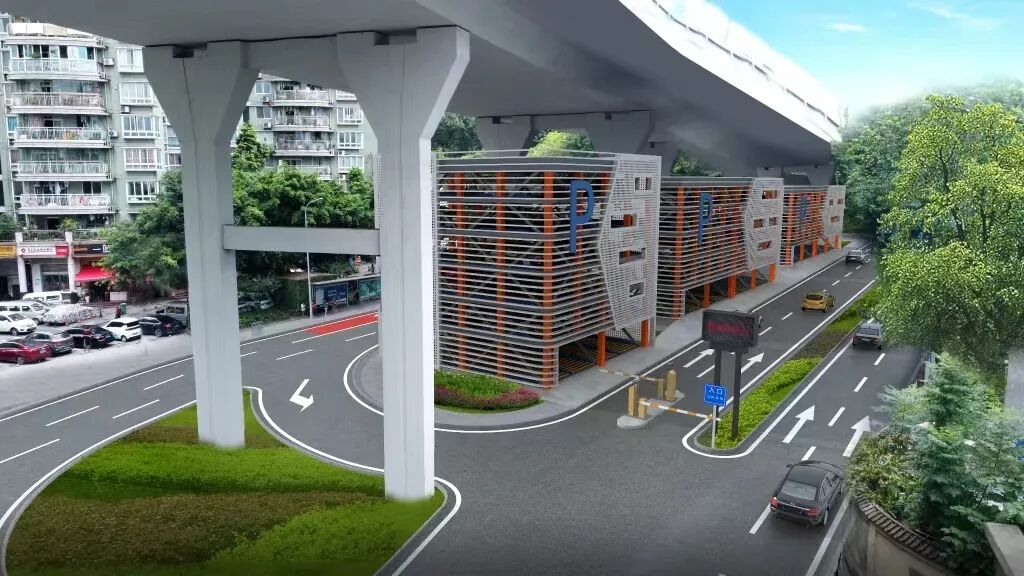 沙坪坝区石门大桥桥下立体停车场建设效果图。市住房城乡建委供图