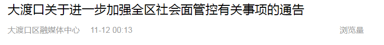 11月12日0—24时重庆疫情通报:新增158+1662,759例在隔离管控人员中发现,817例在区域核酸检测中发现