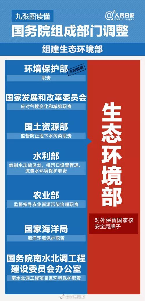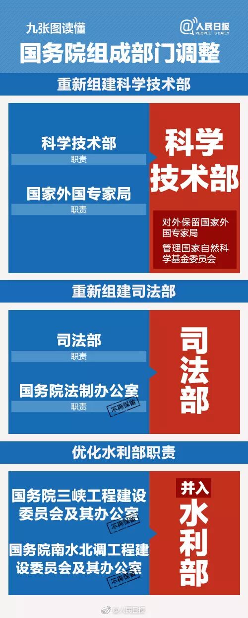 今天,国务院机构改革方案提请十三届全国人大一次会议审议。根据该方案,改革后,国务院正部级机构减少8个,副部级机构减少7个,除国务院办公厅外,国务院设置组成部门26个。具体调整情况如下: