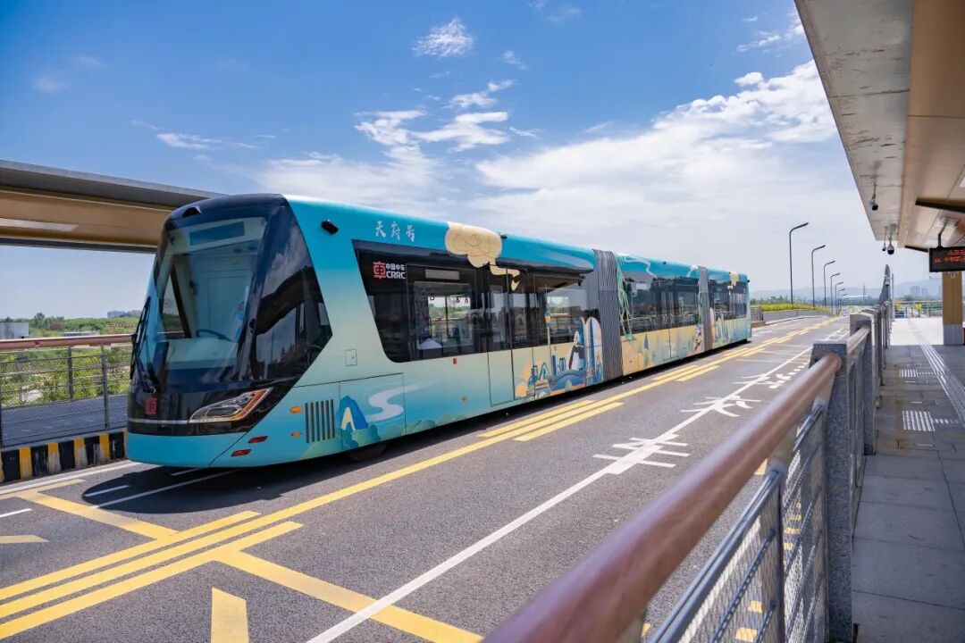 5日,“蜀都号”“天府号”智轨列车在成都首次亮相,正式载客试跑,向成都市民直观展示智轨优质运营服务,推动智轨列入成都市低运量轨道交通建设规划。(来源:成都发布)