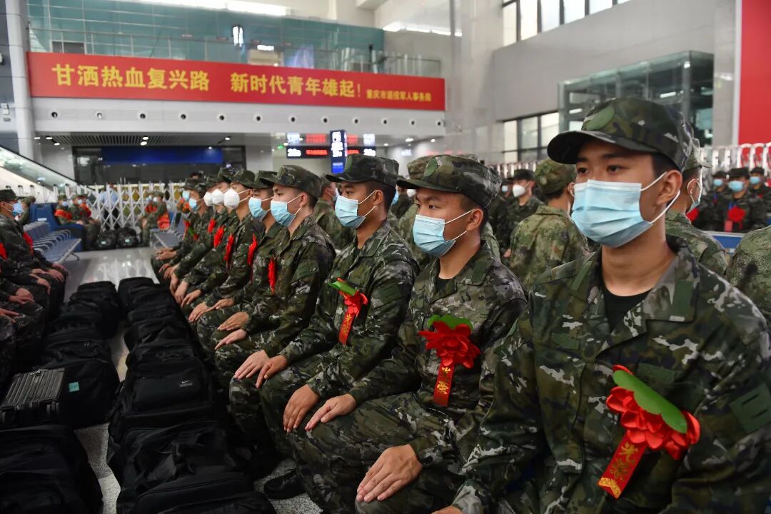 9月,铁路军运正当时。17日,重庆火车北站迎来了一批特殊的乘客——刚入伍的新战士。他们身着整齐的军装,身姿挺拔,目光坚定,胸前红花鲜艳。