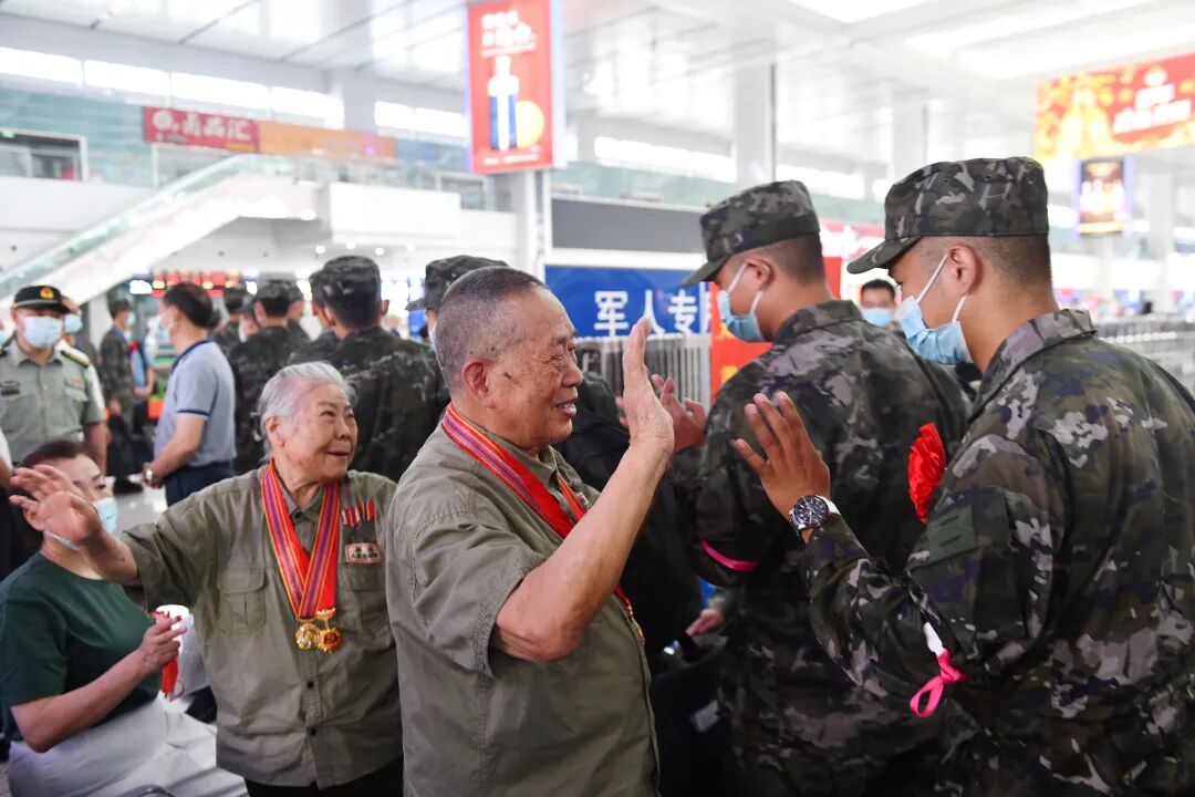 “看到这些新入伍的娃儿,我好像看到了当年的自己。”90岁的老兵肖先炳声音依然洪亮,“希望你们到部队后,听党的话,苦练本领,成为一名能打胜仗、作风优良的合格战士。保家卫国,当年有我。民族复兴,要靠你们!”