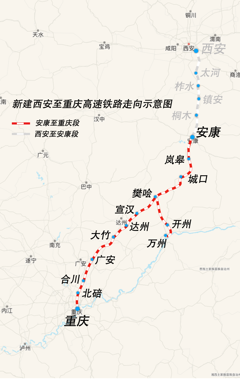 西安至重庆示意图