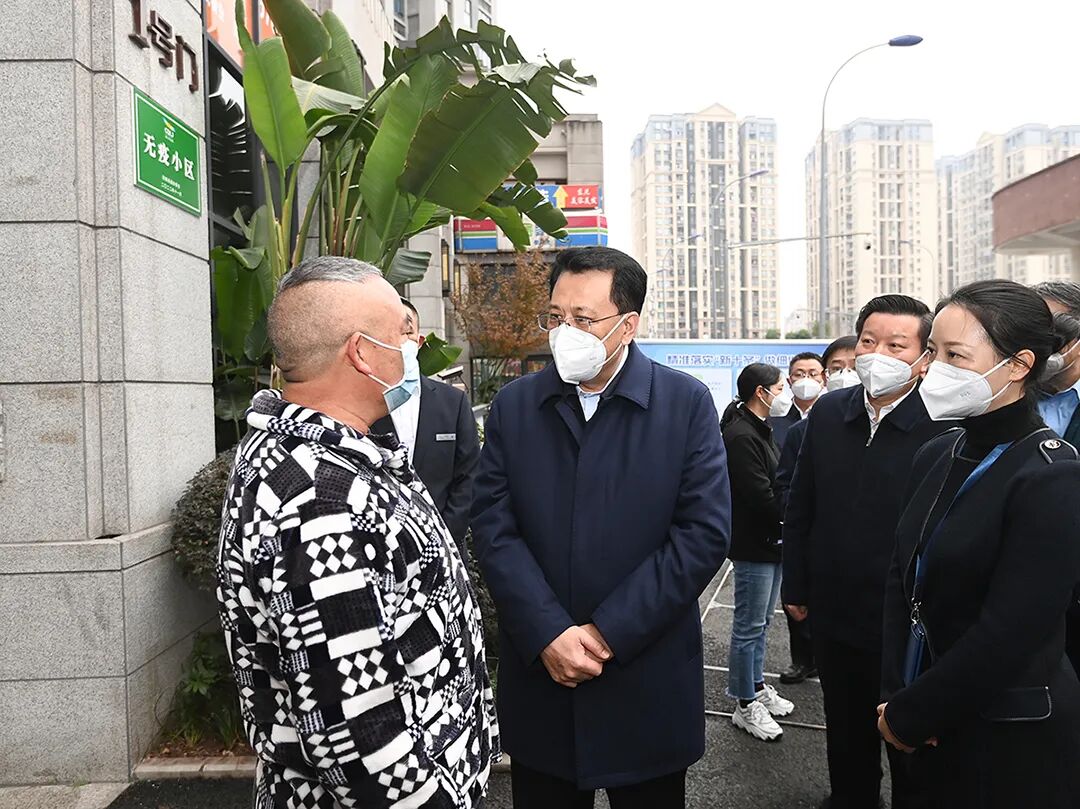 来到鸳鸯街道金岚社区世茂·茂悦府小区,袁家军、胡衡华与基层干部、网格员和居民群众深入交流,了解社区优化落实防控措施、恢复生活秩序情况。袁家军强调,要提升社区服务能力,健全工作体系,做细群众工作,增强群众的获得感和满意度。