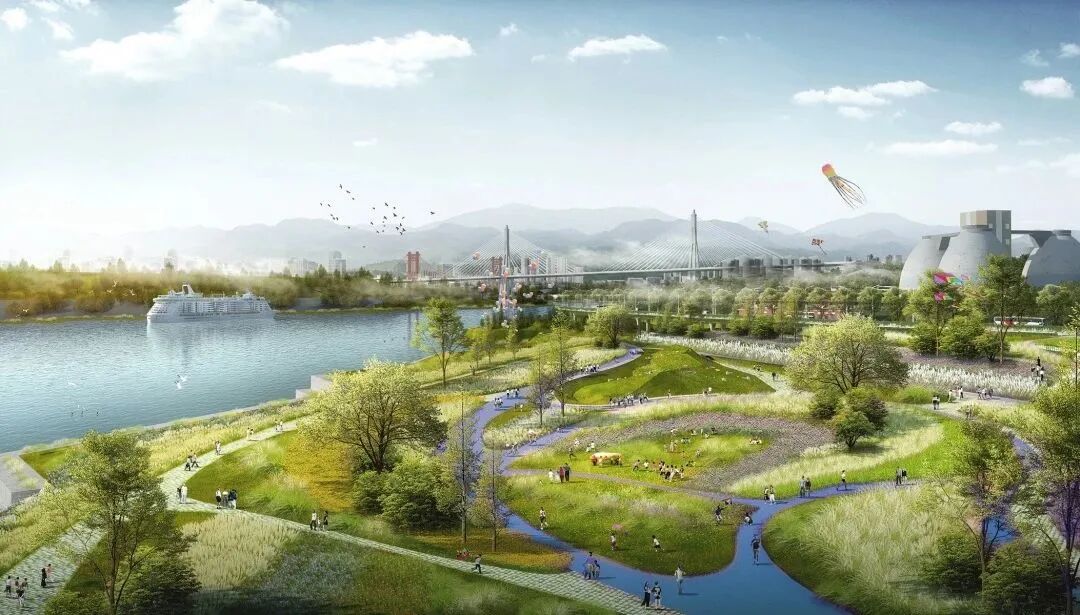 北滨路东延伸段生态综合修复工程效果图。江北区委宣传部供图