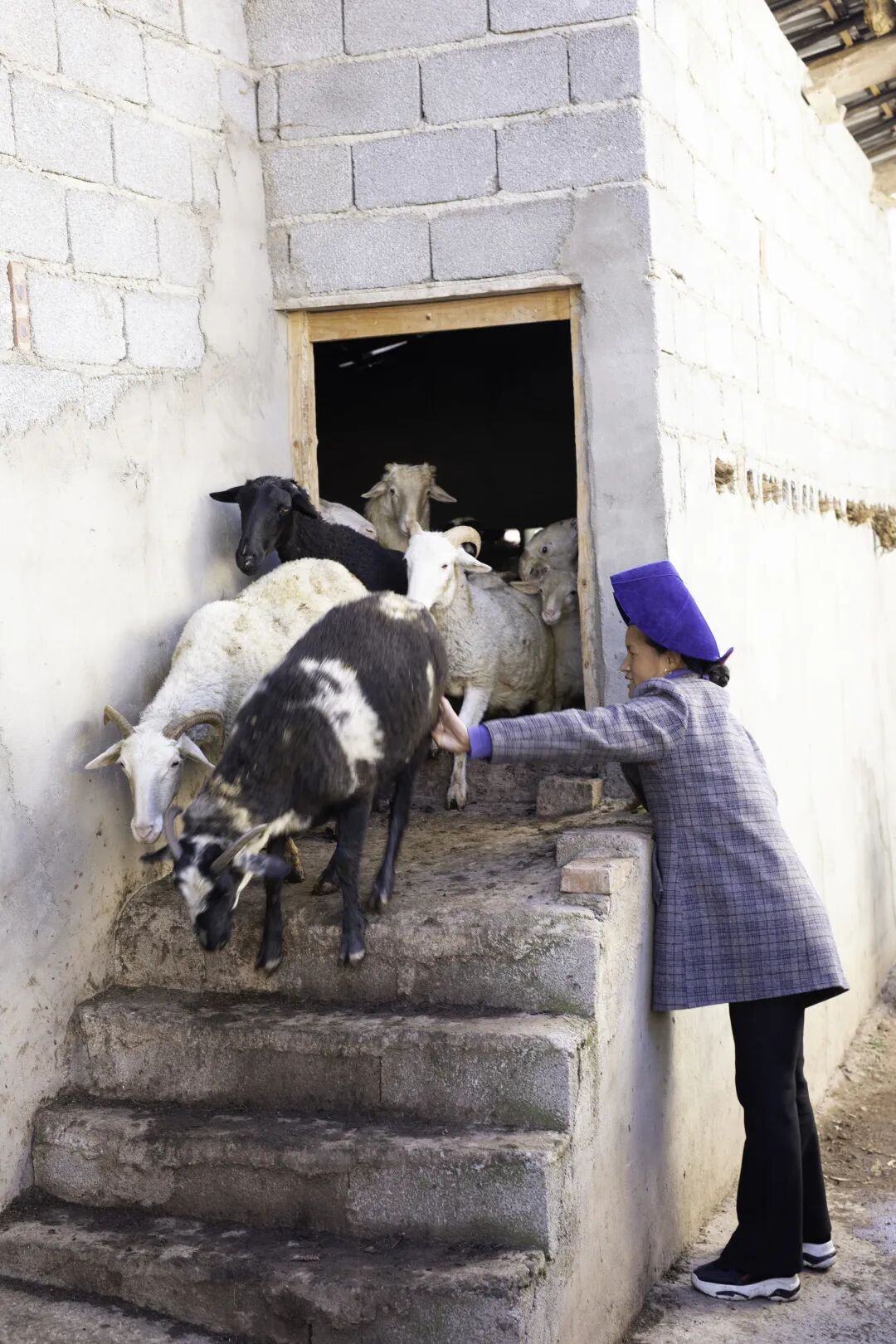 项目受益妇女开始每天的放羊工作。