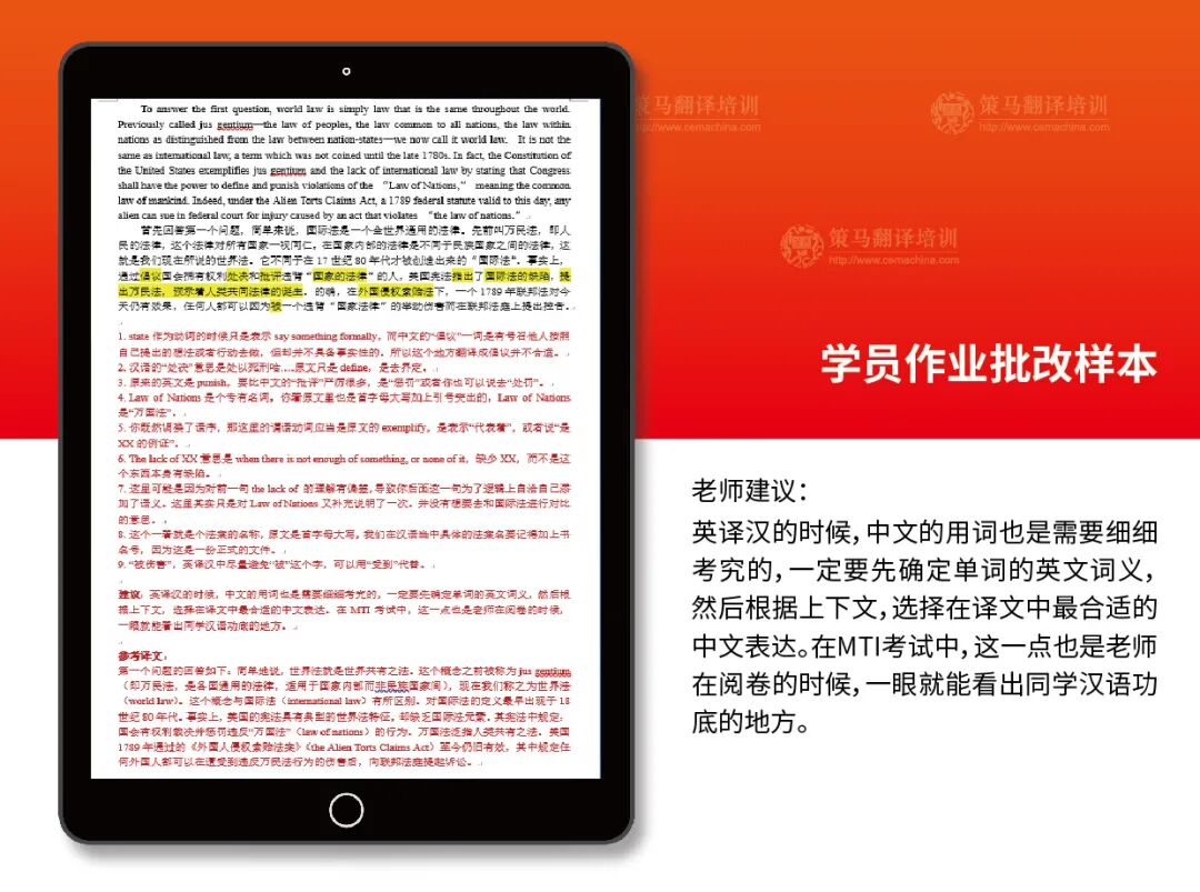 策马译文批改团队包括但不限于外交部翻译司前高级翻译、联合国赴华项目译员、策马名师团队。
