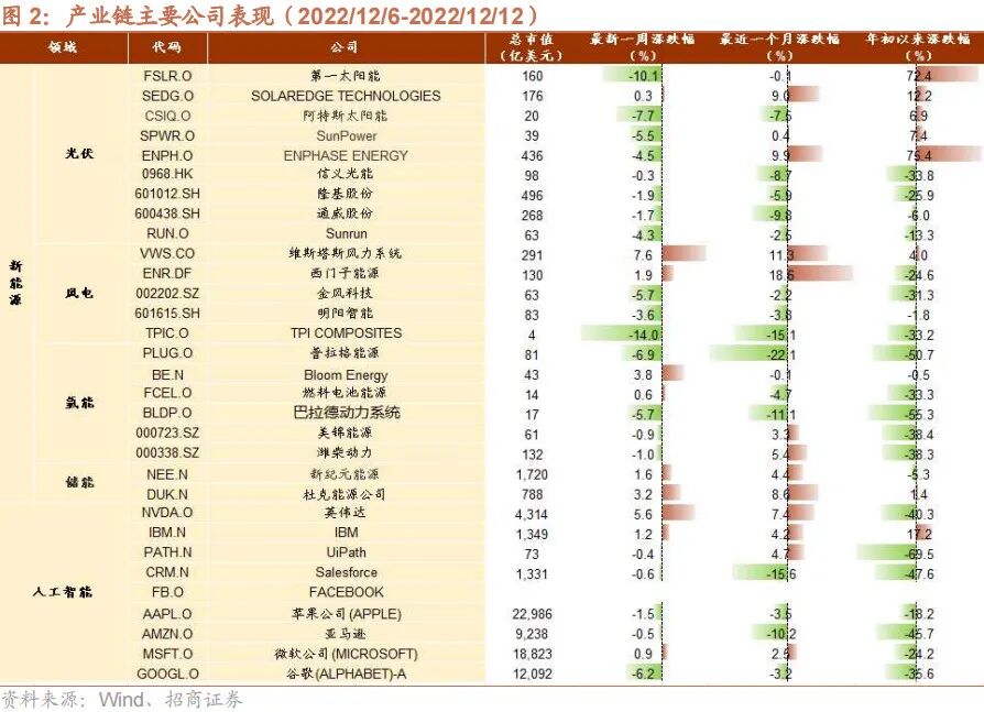 上周海外股市涨少跌多。产业趋势方面,OpenAI推出人工智能聊天原型ChatGPT,上线5天用户量突破百万,拉开强人工智能时代帷幕;欧洲2022年家用电池储能系统安装数量已超过百万组,电池规模超过9GWh,预计到2026年底有望增长300%达到32.2GWh,拥有光储系统的家庭将达到390万个。