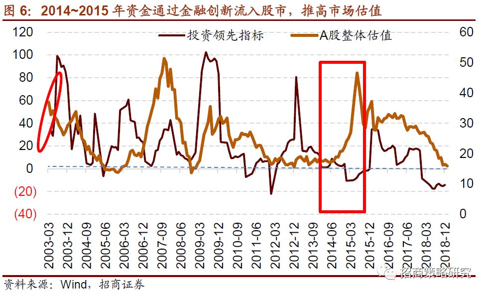 2014年到2015年上半年,地产周期进入下行周期,基建投资也一般,制造业投资也处在下滑的状态,实体经济融资不畅,央行主动投放基础货币,在金融创新的引导下,通过各种途径进入了股票和债券市场,最终带来了“脱实入虚”推高了金融资产的价格。A股出现了基本面下行情况下纯拔估值的牛市。