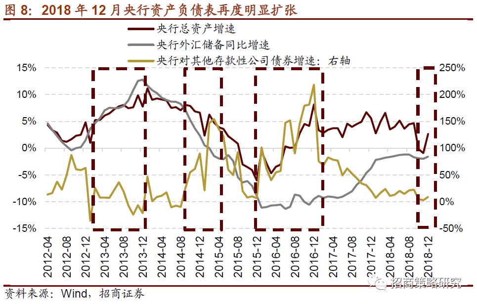 ⚑2018年12月央行资产负债表再度扩张,除货币政策工具带来“对其他存款性公司债权”增长外,“其他资产”的增量创2002年以来单月最高。12月央行总资产增长1.34万亿,其他资产增加5875亿元。