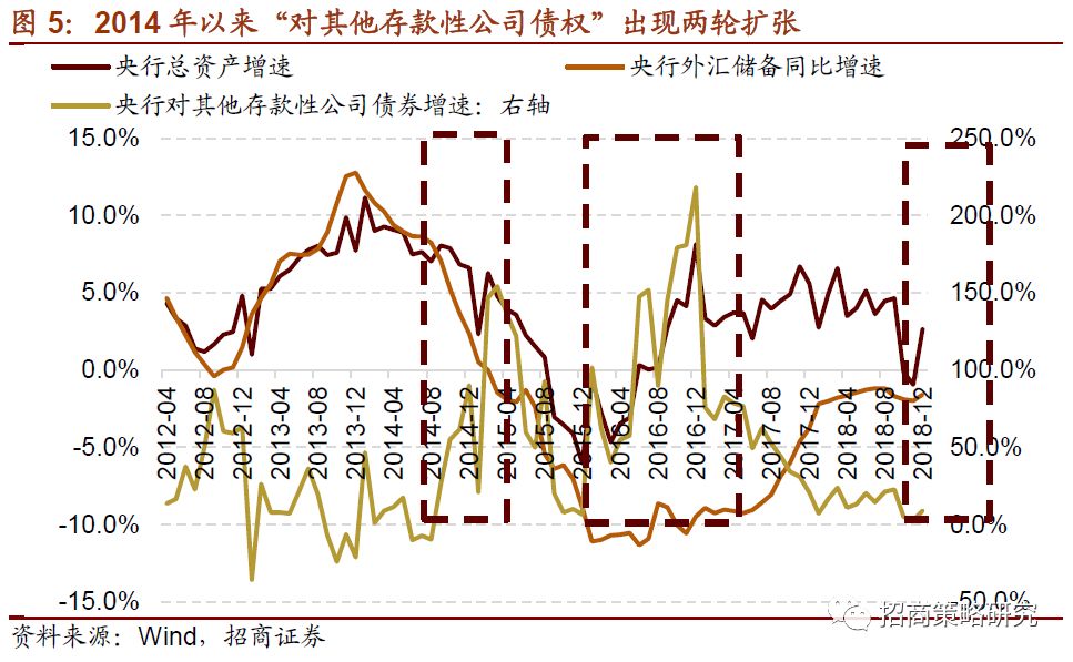 ⚑ 第三,与资本市场五年政策支持周期和新市场推出的巧合:自1999年开始,国家每五年会出台一个较重要的支持资本市场的文件,同时会推出一个新的市场。文件下发前后,新市场推出之前,央行其他资产均会不同程度扩张。
