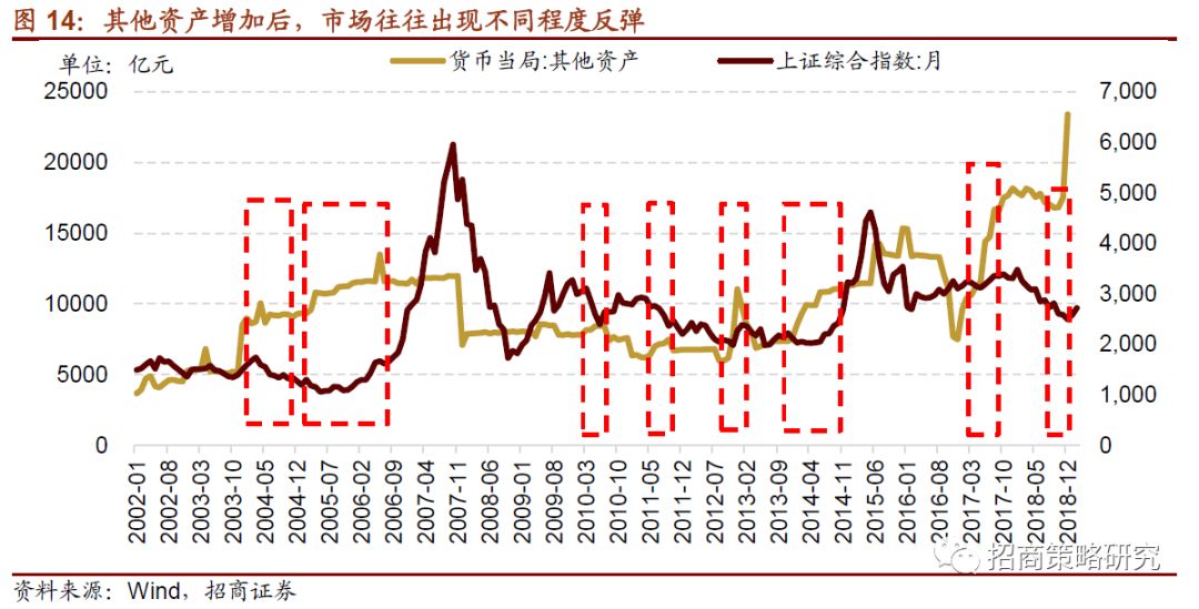 2018年12月,央行“其他资产”大幅增加,1月至今,上证指数反弹幅度已经超过了10%。我们在1月和2月均写报告提示了这一点,参考《央行行为“异动”对A股的潜在影响》和《沐浴春光、聚焦科创》。