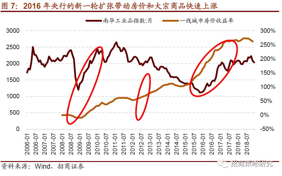 2016年开始,央行的新一轮大幅投放开启,2016年1月,PSL大幅增加1.9万亿,棚改货币化加速,这一轮基础货币的投放以棚改货币化为代表,定向投放给房地产以达到去库存的目的。其结果是2016年开始的新一轮房价的上涨,地产开工的复苏叠加供给侧改革,大宗商品价格大幅上涨。