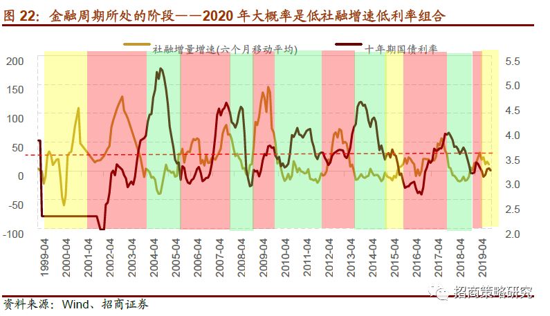 ⚑2020年地产投资可能进入下行周期,基建进入上行周期,“房基”共振难以实现,PPI难有大幅上行空间;CPI在下半年有望震荡下行,2020年下半年逐渐面临通缩预期;上半年基数高,新增社融增速难以明显回升,下半年稳增长压力加大,货币政策发力,有望扭转低社融增速预期。2020年科技将会进入加速上行周期。根据以上判断,2020年科技+金融风格有望占优,具体而言,科技上半年更加占优,金融下半年更加占优。