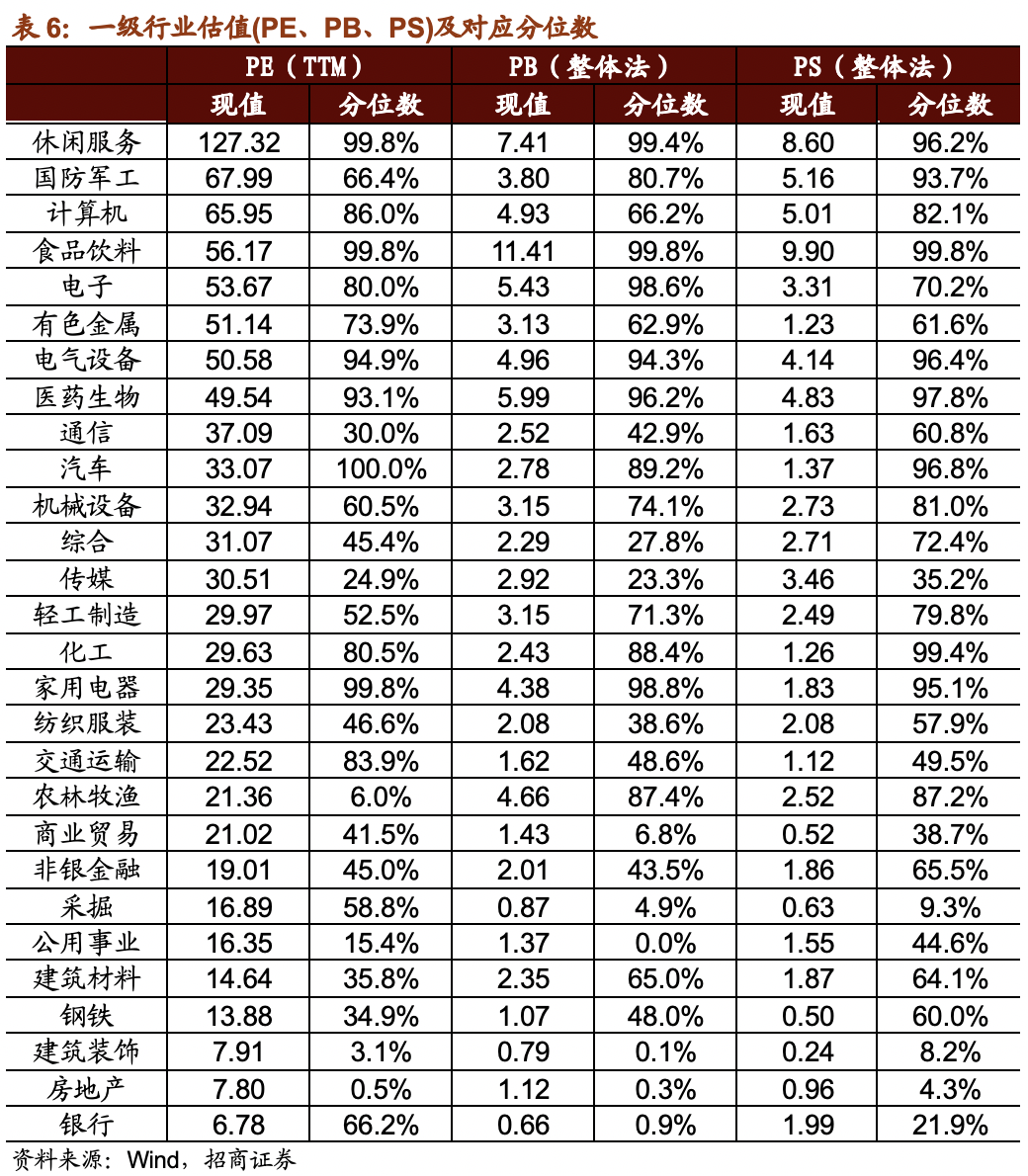 【数据·估值】本周全部A股估值水平上行,PE(TTM)上行0.4X至20.2X,处于历史估值水平的95.8%分位数;行业估值涨跌分化,电气设备、医药生物、计算机、有色金属板块上涨明显,非银金融、通信板块略有下跌。