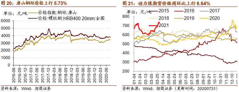 本周钢坯、螺纹钢、铁矿石价格继续上行。截至4月2日,唐山钢坯价格价格指数收于5016.0元/吨,周环比上行5.73%;全国螺纹钢价格指数周环比上涨3.78%至4993.0元/吨;铁矿石价格指数周环比上行2.59%至595.85。