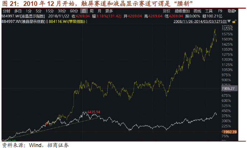 以基本面作为导向的研究一般不会对技术分析做太大的关注,但是作为产业趋势投资或者赛道投资,也可以图形作为参考。通过技术分析,可以避免过早参与某一个产业趋势从而承担较高的机会成本,同时,也可以帮助寻找最强的投资标的。实际上,如果一个真实发生的产业趋势爆发,一定会伴随股价的爆发。反过来,如果连股价都很平淡,多数情况下,就是虚假的产业趋势。