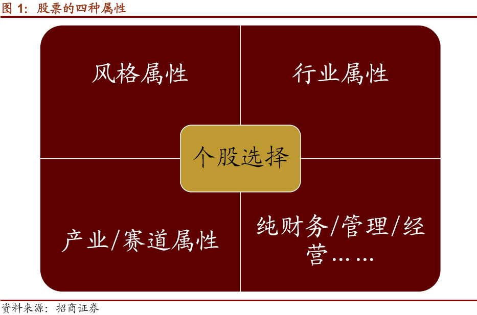 如果不是将公司看成纯交易标的,而是更加注重公司属性,那么投资者持股期限就会拉长,短则一个季度,长则2-3年,这种投资者一般称之为“中期投资者”,中期投资者必须要考虑标的所处的外部环境,因为在中期任何一家公司都会受到经济、行业、产业、赛道变化的影响。因此,做一个中期选股,一般考虑投资标的的四个属性,分别是“风格属性”“行业属性”“产业/赛道属性”“个股自身的财务/管理/经营”等指标。