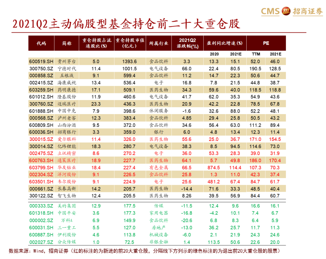 【招商策略】2020Q2主动偏股公募基金持仓分析——基金仓位回升,青睐医药电子新能源