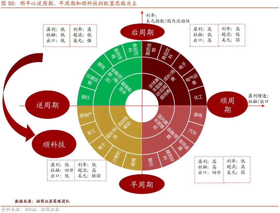 ⚑ 根据A股所处的阶段,2022年大盘风格相对占优;主线沿着“逆周期”和“顺科技”两个方向布局。逆周期政策布局“流动性改善”“稳社融”“新(能源基建与数字)基建”“稳地产”“促销费”;科技领域关注“元宇宙+VR”以及AIOT应用落地(智能驾驶+工业互联网)。