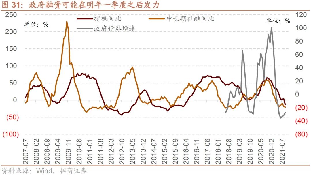去年疫情爆发后,政府投资对于稳增长起到了至关重要的作用。但今年以来随着政策基调定为控制宏观杠杆率,地方政府专项债发行增速明显回落,基建投资增速持续回落。由于明年经济下行压力进一步加大,而重要会议将要召开,因此二季度开始政府融资增速企稳回升稳,基建加码的概率较大。