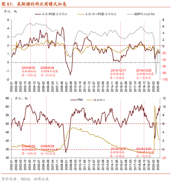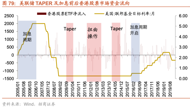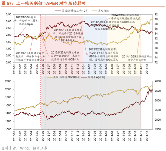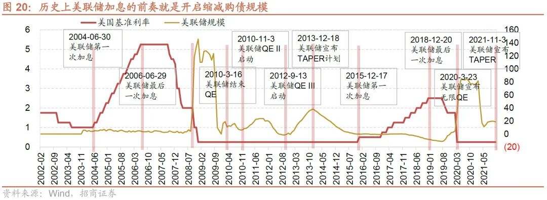 从历史的美联储货币政策的调整来看,美联储政策的调整与A股的波动时间窗口较为吻合,体现为全球流动性变化对A股产生的影响。